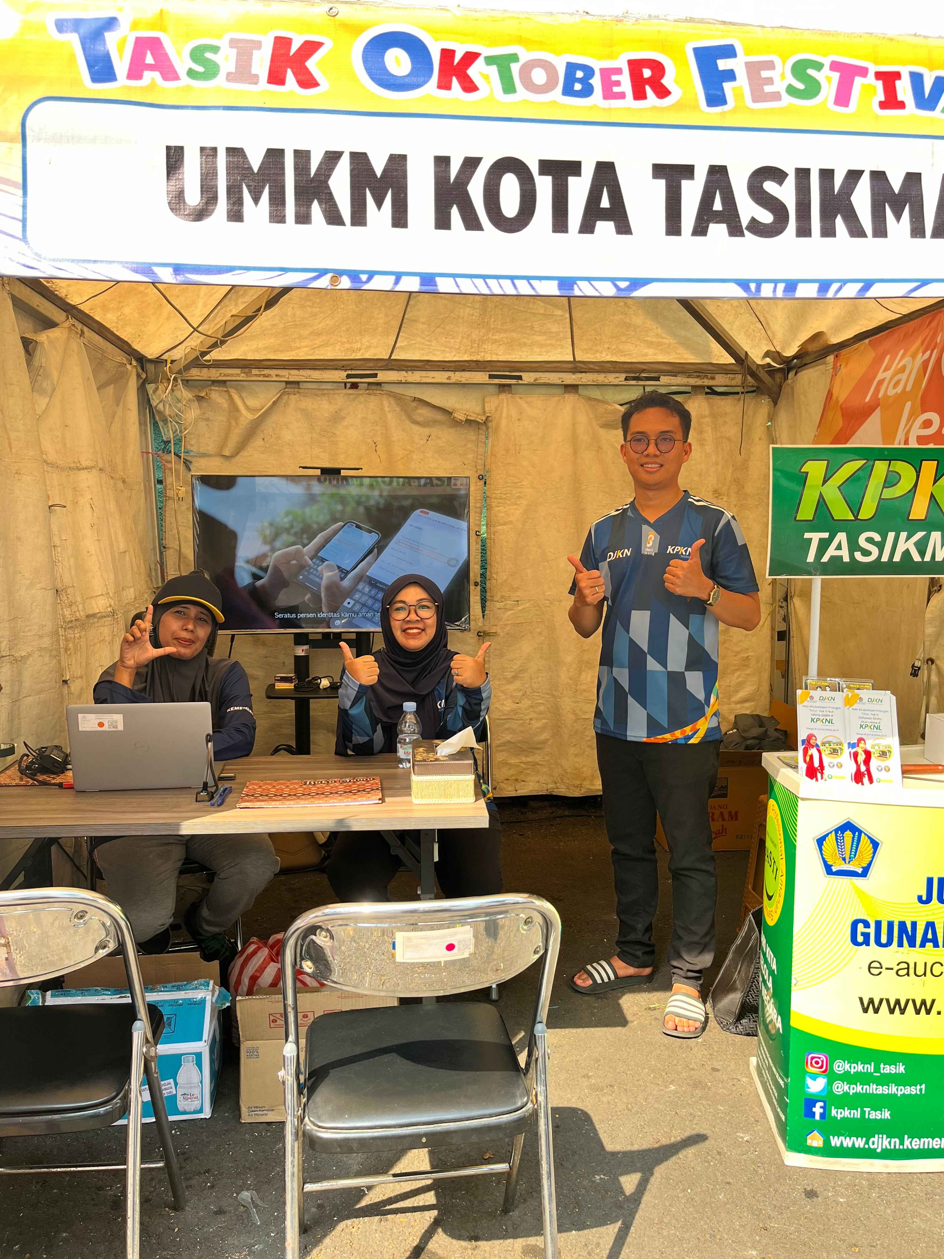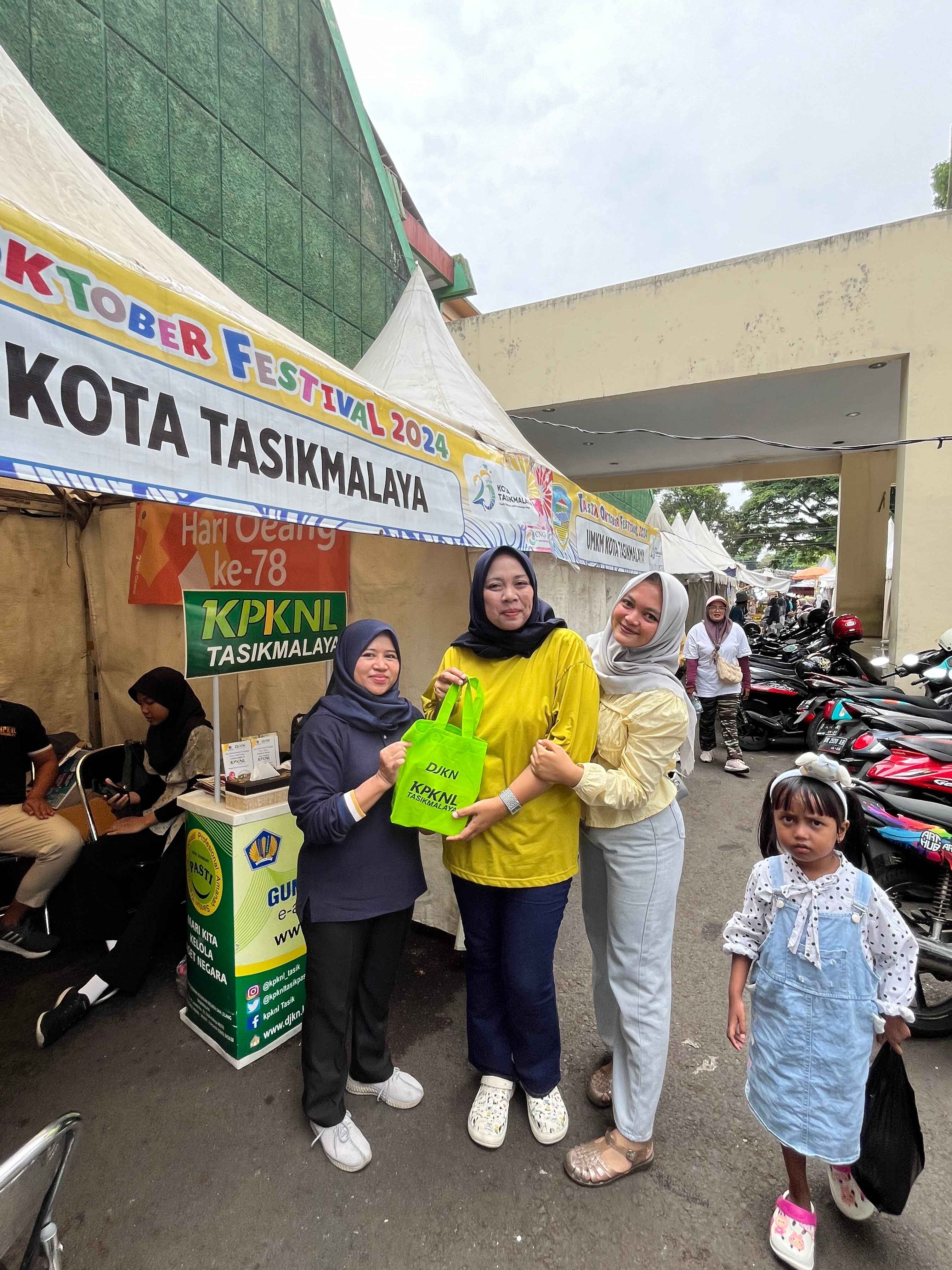 Kota Tasikmalaya - Dalam rangka ikut menyemarakkan Hari Jadi ke - 23 Kota Tasikmalaya bertajuk Tasik Senyum - Semangat dan nyaman untuk maju, Kantor Pelayanan Kekayaan Negara dan Lelang (KPKNL) Tasikmalaya berpartisipasi sebagai peserta booth pameran UMKM Tasik October Festival (TOF) 2024. Selama 2 (dua) hari hadir pada booth yang berada di Area Parkir Gedung Olahraga (GOR) Badminton Susi Susanti memberikan edukasi dan sosialisasi pengelolaan kekayaan negara dan lelang khususnya lelang UMKM.