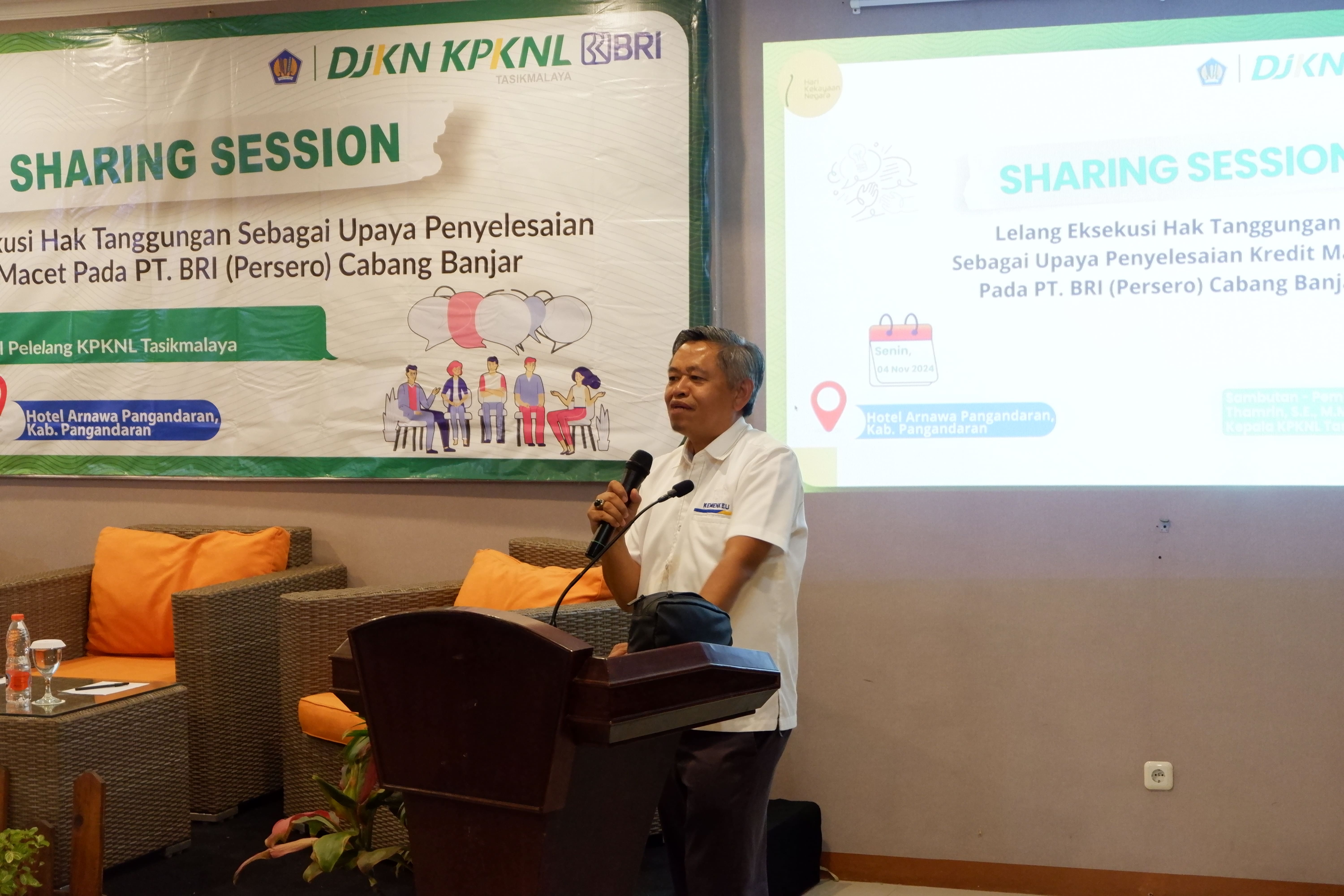 Kab. Pangandaran – KPKNL Tasikmalaya mengadakan acara Sharing Session bersinergi dan berkolaborasi bersama PT BRI KC Banjar bertema Lelang Eksekusi Hak Tanggungan Sebagai Upaya Penyelesaian Kredit Macet Pada PT. BRI (Persero) Cabang Banjar pada Senin 4 November 2024. Kegiatan tersebut diikuti oleh pegawai Pemimpin Cabang, Pemimpin Cabang Pembantu, Manajer Bisnis Mikro, RM Credit Risk Restructuring & Recovery, RM SME Task Force, Petugas Penunjang Bisnis, Kepala Unit PT. BRI (Persero) Tbk Banjar dan Team leader Head CRR BRI Bandung sebagai peserta dan 4 (empat) Pejabat lelang KPKNL Tasikmalaya sebagai pameteri di Ballroom Hotel Arnawa Pangandaran.