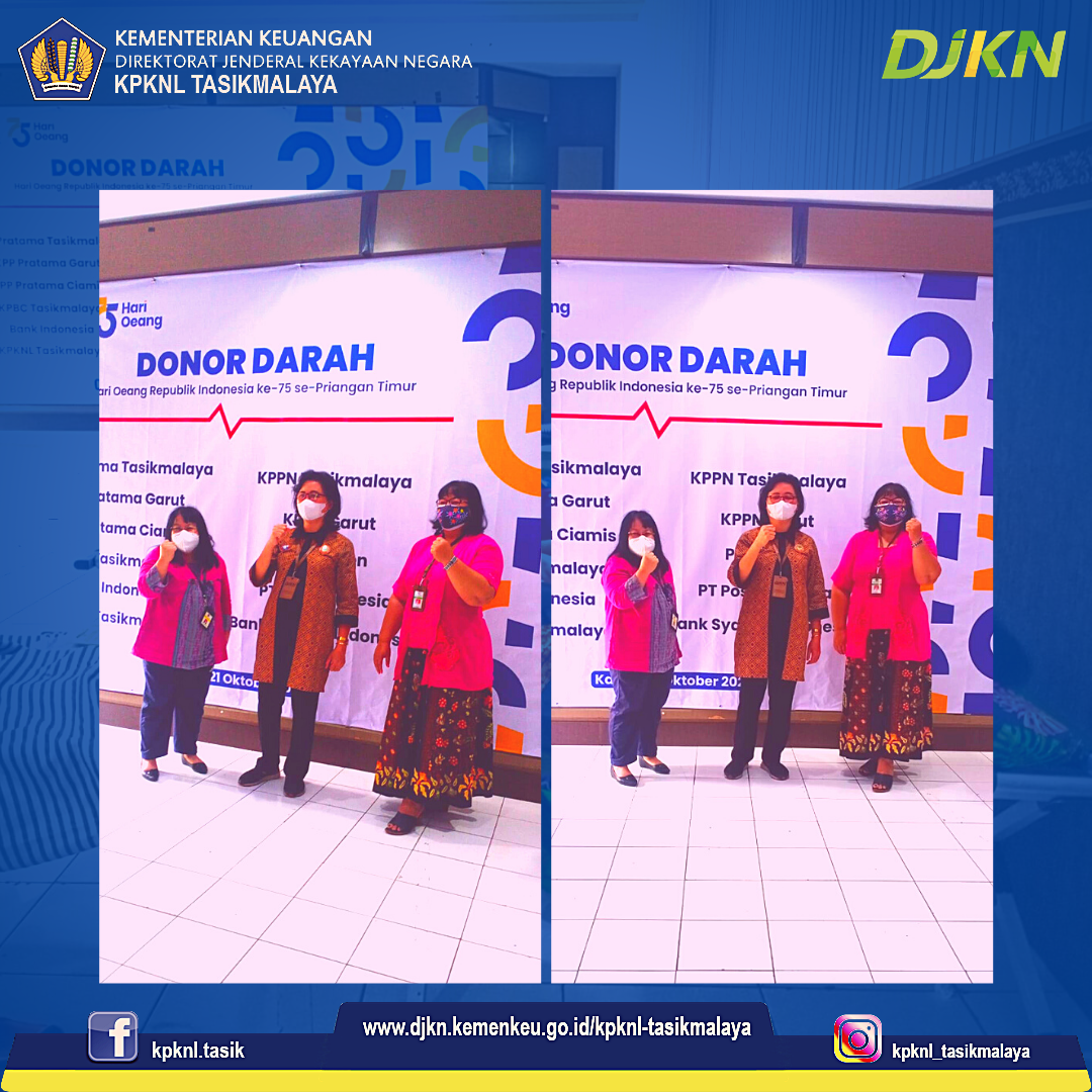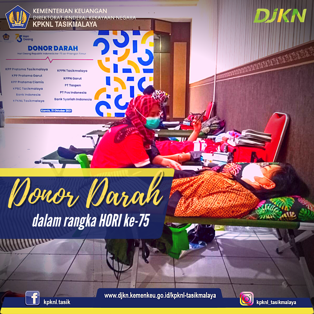 Tasikmalaya- Pada hari Kamis, (21/10) KPKNL Tasikmalaya baru saja mengikuti kegiatan Donor Darah yang dilaksanakan dalam rangka Hari Oeang Republik Indonesia (HORI) ke-75 bertempat di Kantor Pelayanan Pajak Pratama Tasikmalaya. Kegiatan ini diikuti oleh unit vertikal Kementerian Keuangan dan mitra kerja se-wilayah Priangan Timur. Kegiatan dilaksanakan dengan tetap menerapkan protokol kesehatan dengan cara dibuat bergiliran untuk menghindari kerumunan.