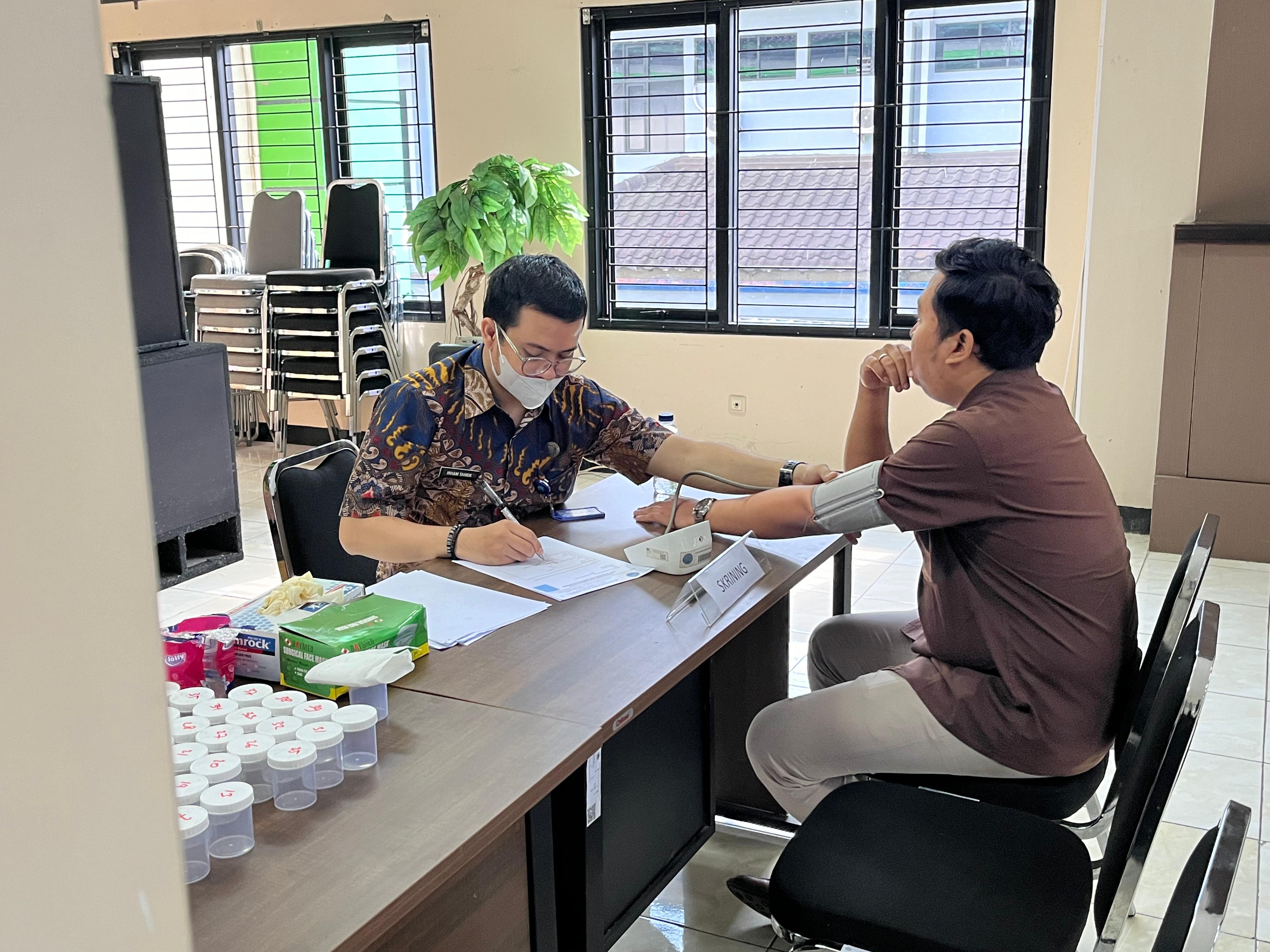 Kegiatan ini diawali dengan setiap pegawai melakukan registrasi di laman https://boss.bnn.go.id/ dengan menyertakan email masing-masing pegwai pada hari sebelumnya. Selanjutnya pada hari Kamis, pegawai mendaftar ulang pada meja registrasi untuk mendapatkan formulir tes urin. Sebelum memberikan sample urine, pegawai di cek kesehatan berkaitan dengan tensi dan juga riwayat penggunaan dari resep dokter maupun lainnya. Setelah mengambil sample urin petugas dari BNN langsung mengujinya dengan Strip Tes Narkoba Drug Abuse dengan 6 parameter. Hasil dari tes urine langsung dikirimkan melalui alamat email pegawai masing-masing. Diharapkan dengan adanya kegiatan ini seluruh pegawai dapat sadar dan berhati-hati akan penyalahgunaan Napza baik dilingkungan kerja maupun tempat tinggal.
