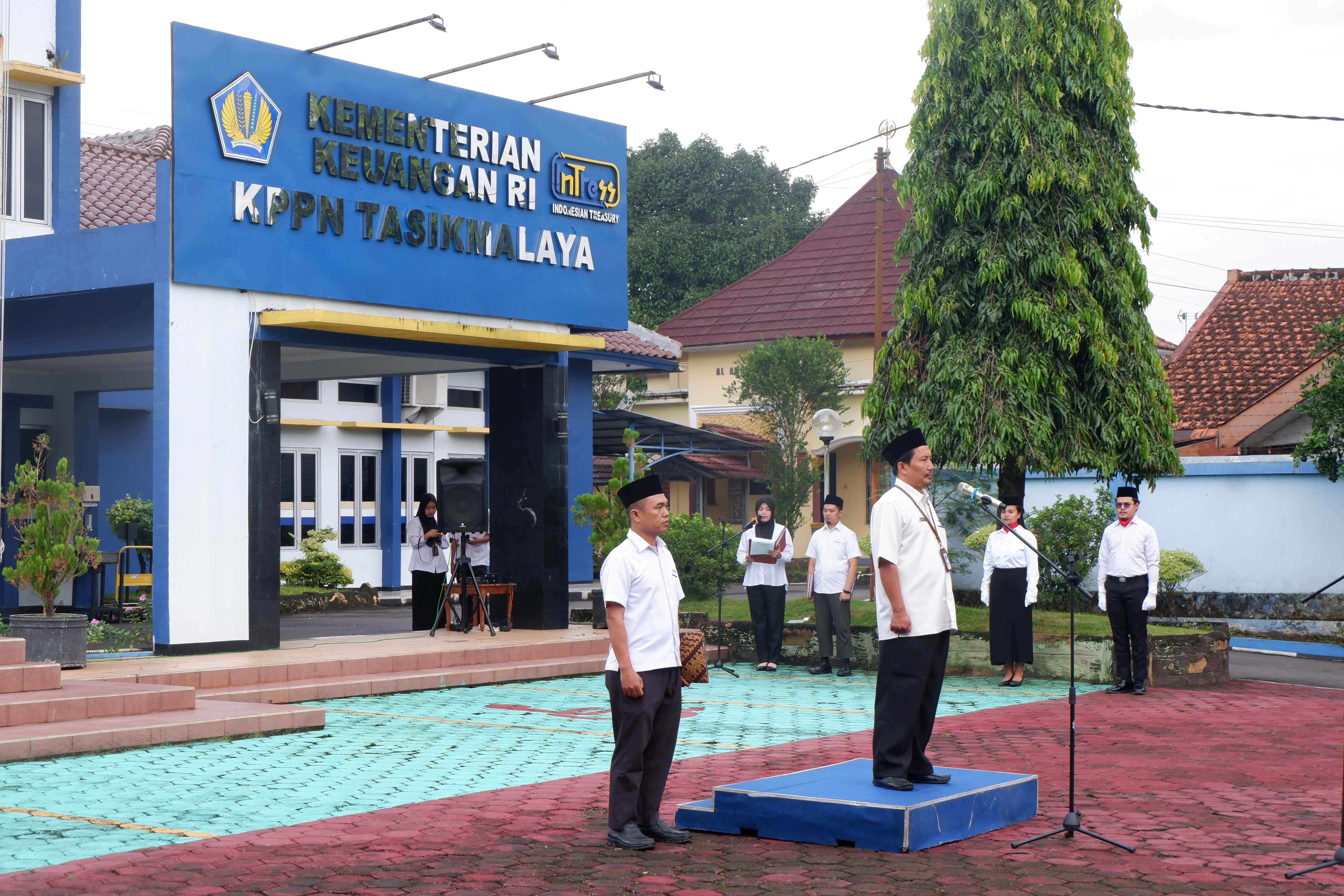 Tasikmalaya – Selasa 20 Mei 2025, Kemenkeu Satu Priangan Timur memperingati Hari Kebangkitan Nasional ke 177 dalam Upacara Bendera yang dilaksanakan di Halaman Parkir KPPN Tipe A1 Tasikmalaya. Komandan upacara kali ini ialah Zainal Abidin Kepala KPPN Tipe A1 Tasikmalaya dan peserta merupakan perwakilan semua unit vertikal Kementerian Keuangan Se-Priangan Timur. Tema peringatan Hari Kebangkitan Nasional ke-117 tahun ini adalah “Bangkit Bersama Wujudkan Indonesia Kuat.”