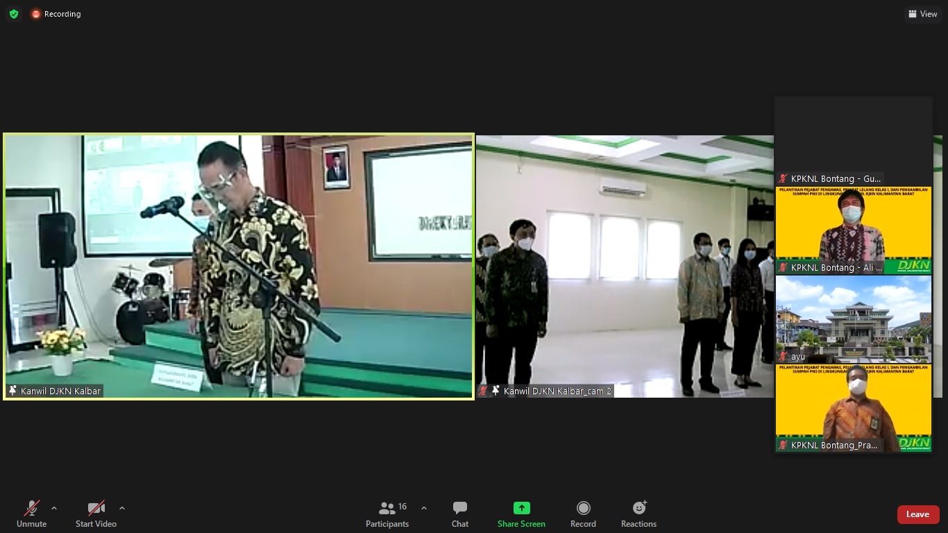 Tegal - Digelar secara virtual/daring pada 24-26 Februari 2021, tiga orang punggawa Kantor Pelayanan Kekayaan Negara dan Lelang (KPKNL) Tegal dilantik dan diambil sumpahnya menjadi Pejabat Pengawas di lingkungan Direktorat Jenderal Kekayaan Negara (DJKN).