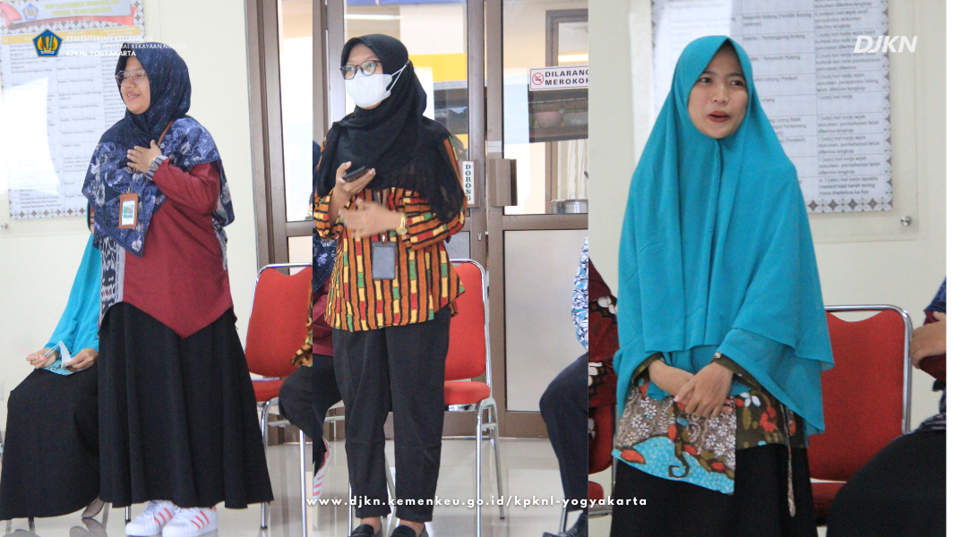 SEMAKI kali ini semakin semarak dengan kedatangan tiga srikandi yang menjadi penggawa baru memperkuat "Skuad Trengginas" KPKNL Yogyakarta. Mereka ketiga srikandi ini, yakni Nining Nur Taslimah, Fina Indriana dan Ellida Nur Asriati masing-masing diberikan kesempatan untuk memperkenalkan diri.