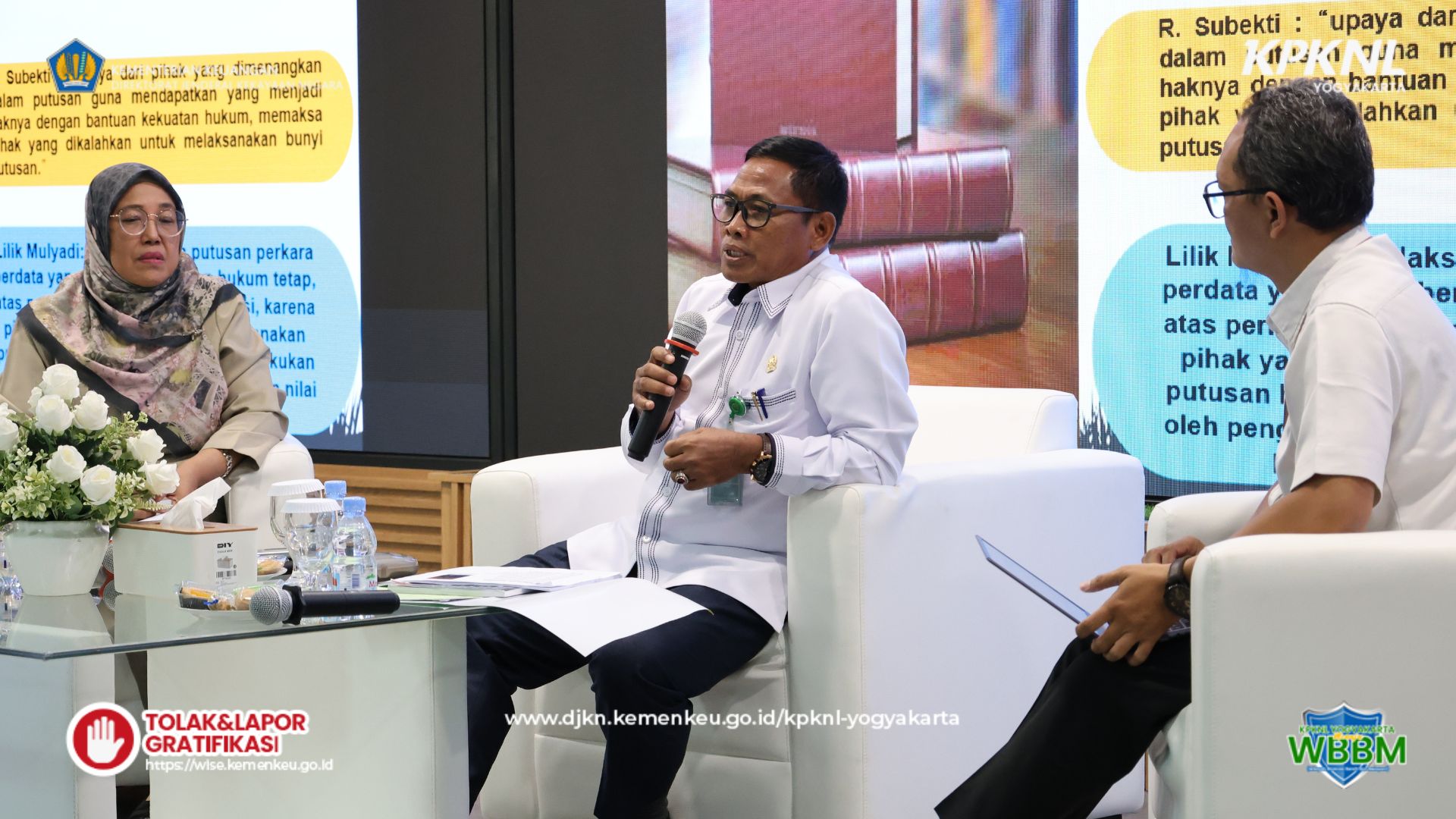 Acara ditutup dengan pemberian materi FGD Lelang Eksekusi oleh dua narasumber, yaitu Bapak Heri Harjanto selaku Panitera Pengadilan Negeri Sleman dan Ibu Nur Wiyandari selaku Kepala Seksi Penetapan Hak dan Pendaftaran Kantor Pertanahan Kabupaten Sleman. Sesi diskusi interaktif antara narasumber dan peserta menjadi penutup rangkaian kegiatan FGD Lelang Eksekusi.