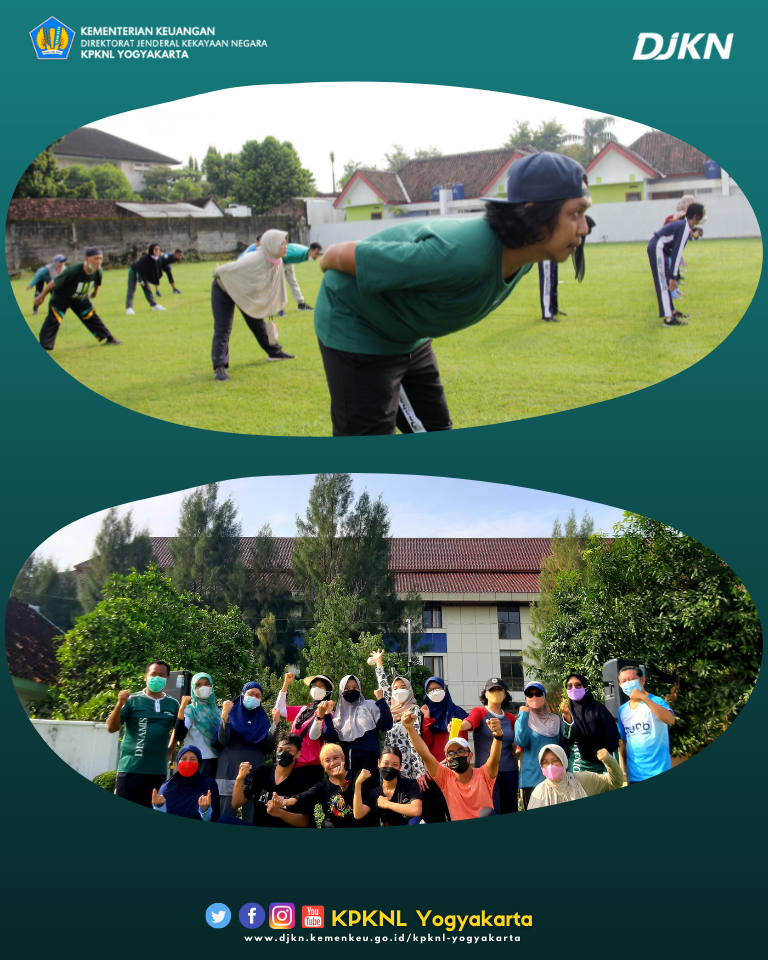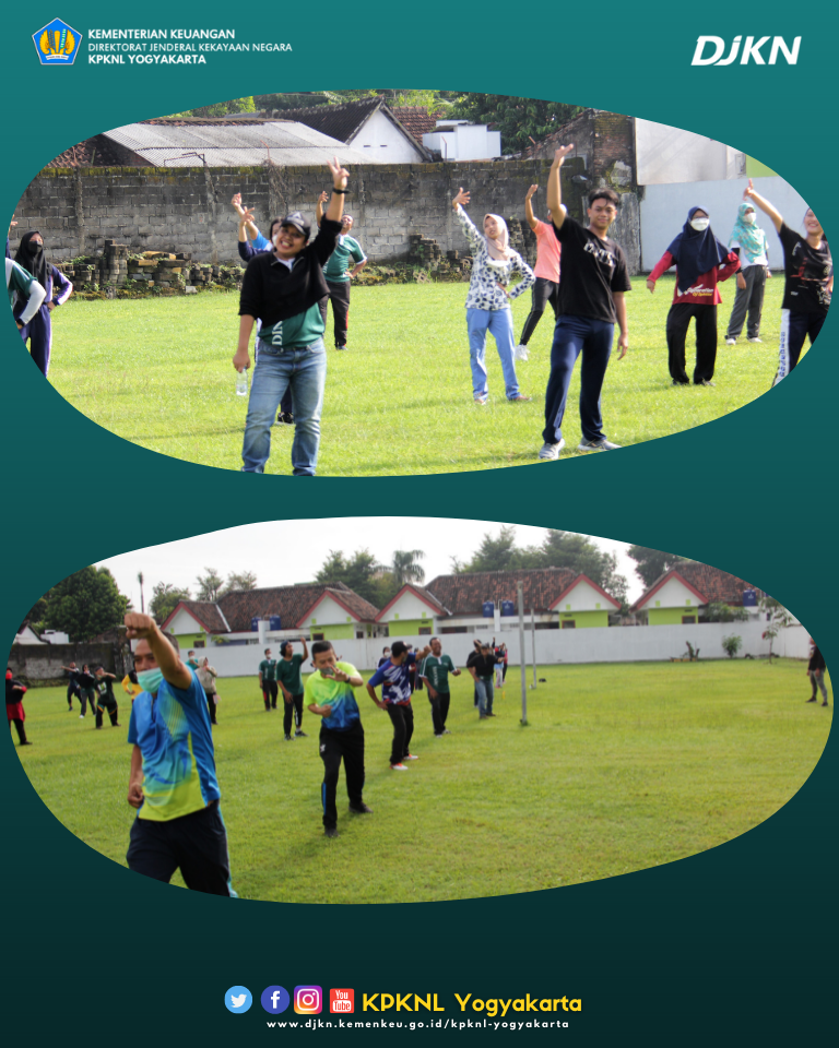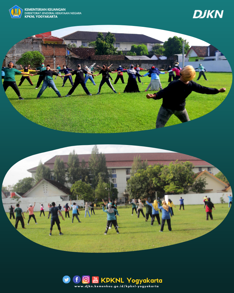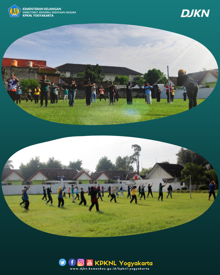 Yogyakarta - Jumat (4/2) penggawa Kantor Pelayanan Kekayaan Negara dan Lelang (KPKNL) Yogyakarta bersama-sama dengan pegawai Kantor Pelayanan Perbendaharaan Negara (KPPN) Yogyakarta dan Gedung Keuangan Negara (GKN) Yogyakarta melaksanakan senam sehat dalam rangka Jumat Krida. Bertempat di lapangan olahraga sisi utara GKN Yogyakarta, senam diselenggarakan dengan menghadirkan instruktur dari sanggar senam terkemuka di Kota Yogyakarta.